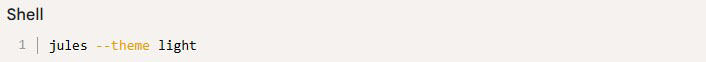 フラグはJulesの挙動をカスタマイズする(例:ターミナルUIをライトテーマに切り替える)。