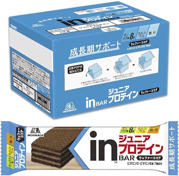 inバー ジュニアプロテイン ココア (12本入×1箱) プロテインバー たっぷりココアのウエファータイプ 高タンパク8g カルシウム・鉄・ビタミンD配合 森永製菓