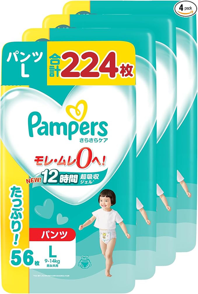 【パンツ Lサイズ】パンパース オムツ さらさらケア (9~14kg) 224枚(56枚×4パック) [ケース品] 【Amazon.co.jp限定】