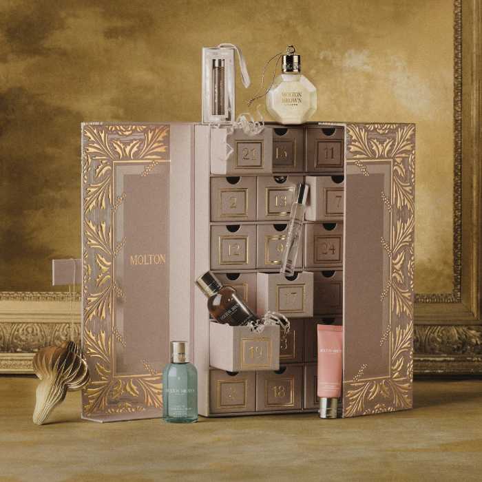モルトンブラウンの象徴ともいえる「アドベントカレンダー」(48,400円)は、毎日ひとつずつ引き出しを開けるたびに新しい香りが広がる特別な体験を届けます。