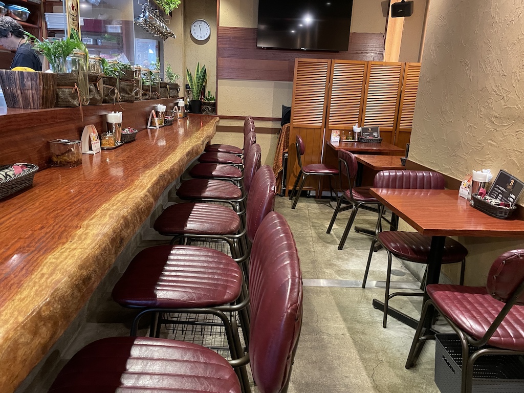 東新宿駅と若松河田駅の間くらい、抜弁天のバス停近くにお店はあります。看板や「B」の文字からもベンガルを感じさせます。店内に入ってみると僕が通いはじめた時代の旧店舗を思い起こさせるような落ち着いた雰囲気。厨房には見知った顔もあって懐かしさを覚えました。