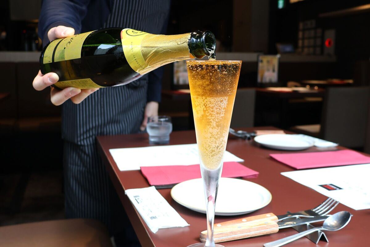 「なみなみ! 私の泡」(ノンアルコールスパークリング)を注ぐ様子