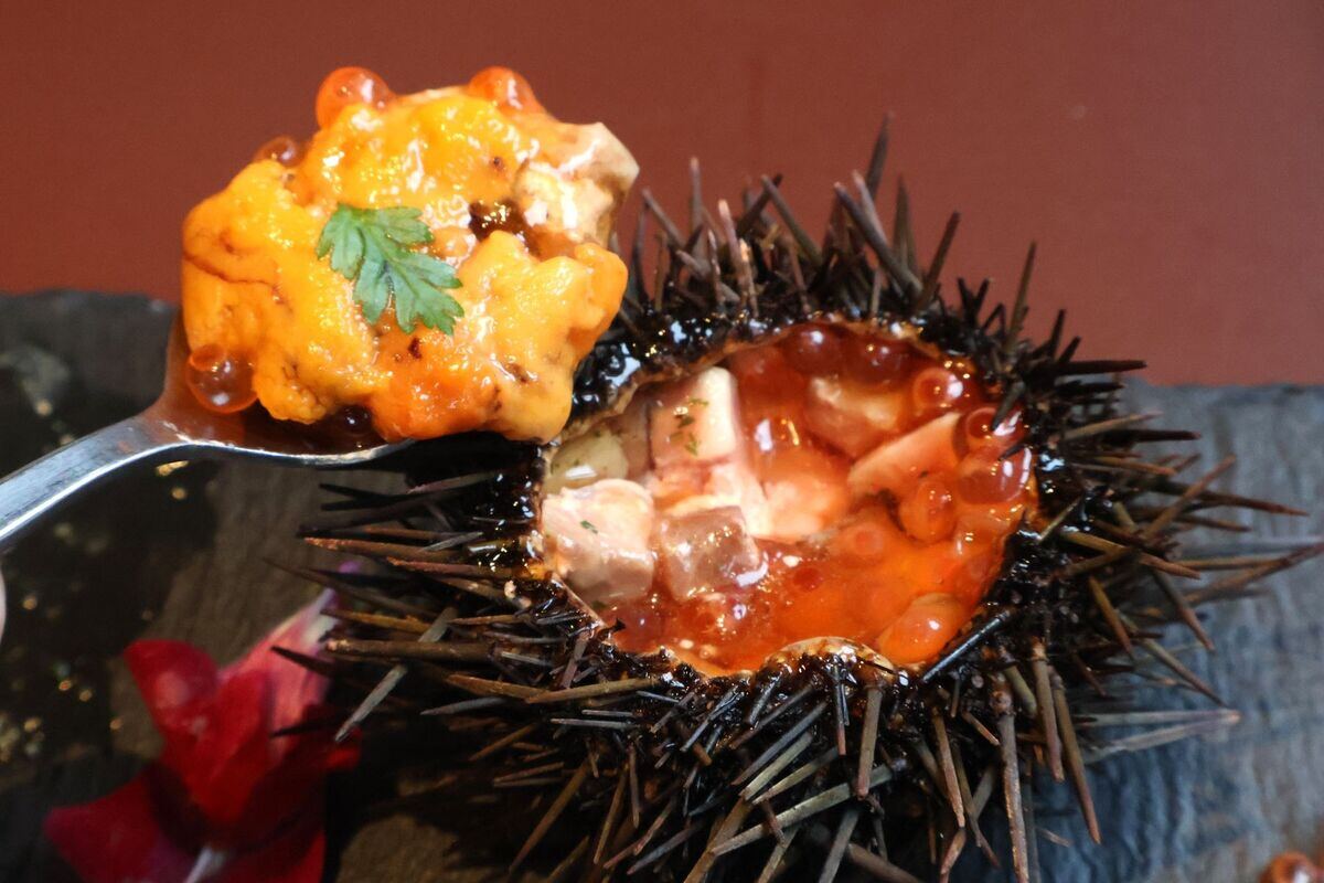 ウニクの底には刻んだ黒毛和牛が入っていて二重に贅沢