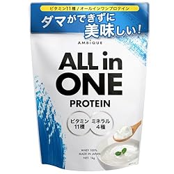 アンビーク オールインワン プロテイン ホエイ ヨーグルト風味 ビタミン11種配合 ミネラル4種配合 国産 1kg (ヨーグルト, 1kg×1個)