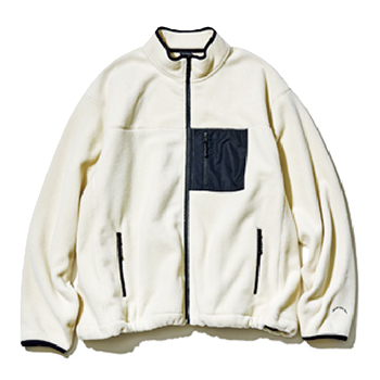 ボーイッシュなジップアウターも色は白、そして思わずふれたくなる、ふかふかの質感で甘さをプラス。カーディガンのような羽織りとして、1枚でフロントを締めてトップス風に、寒さが深まる少し先はアウターの下に着たりと長い期間楽しめる。