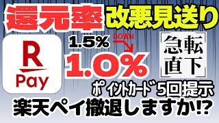 一方で朗報として、3月1日から予定されていた楽天ペイのポイント還元条件の一部変更(楽天ポイントカードの提示回数に応じた還元率の引き下げ)が見送られることが決定した。これにより、当面は現行の還元率が維持される。