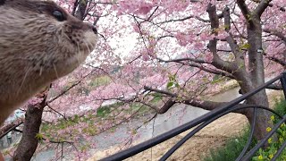 カワウソがお花見!?「河津桜まつり」で咲き誇る桜と鮎に大はしゃぎ
