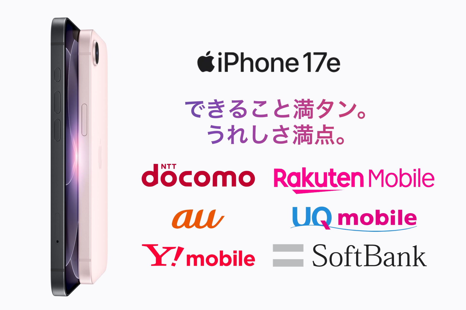 | iPhone 17eをNTTドコモやau、UQ、SoftBank、Y!mobile、楽天モバイルでも取り扱い!各社による価格や予約ページをチェック |