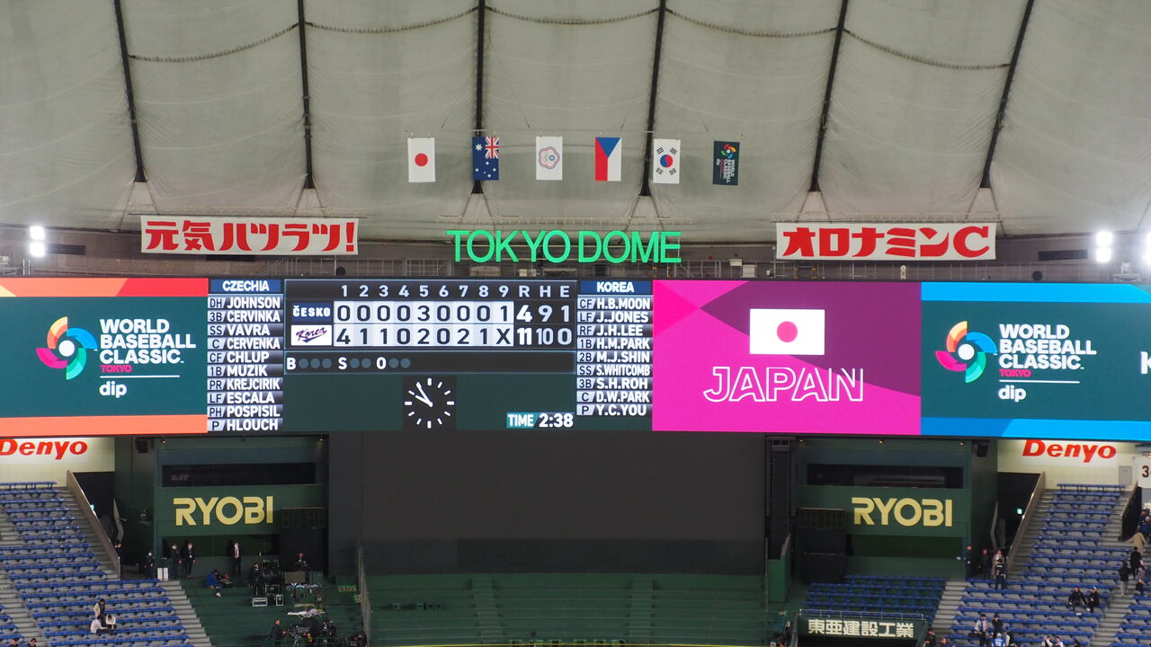 さて、そんな開幕にあたり、僕も早速東京プールが行なわれる東京ドームへ現地観戦に行ってまいりました。日本戦のチケットが取れなかったから…というところも若干あるのですが、それはそれとしてこの世界の祭典に参加したいということで奮い立っての観戦です。むしろ、日本代表以外の試合に行ってこそWBC感も味わえるかもしれません。目指すは開幕日に行なわれたチェコVS韓国戦。平日夜、仕事を終えてからでもすぐにたどり着ける東京ドームはやっぱり近くていいですね。話題になっていた写真・動画の投稿の件も、結局朝令暮改で「NPBルールでやる」ということになったそうですし、記念撮影なども頑張っていきたいところです。