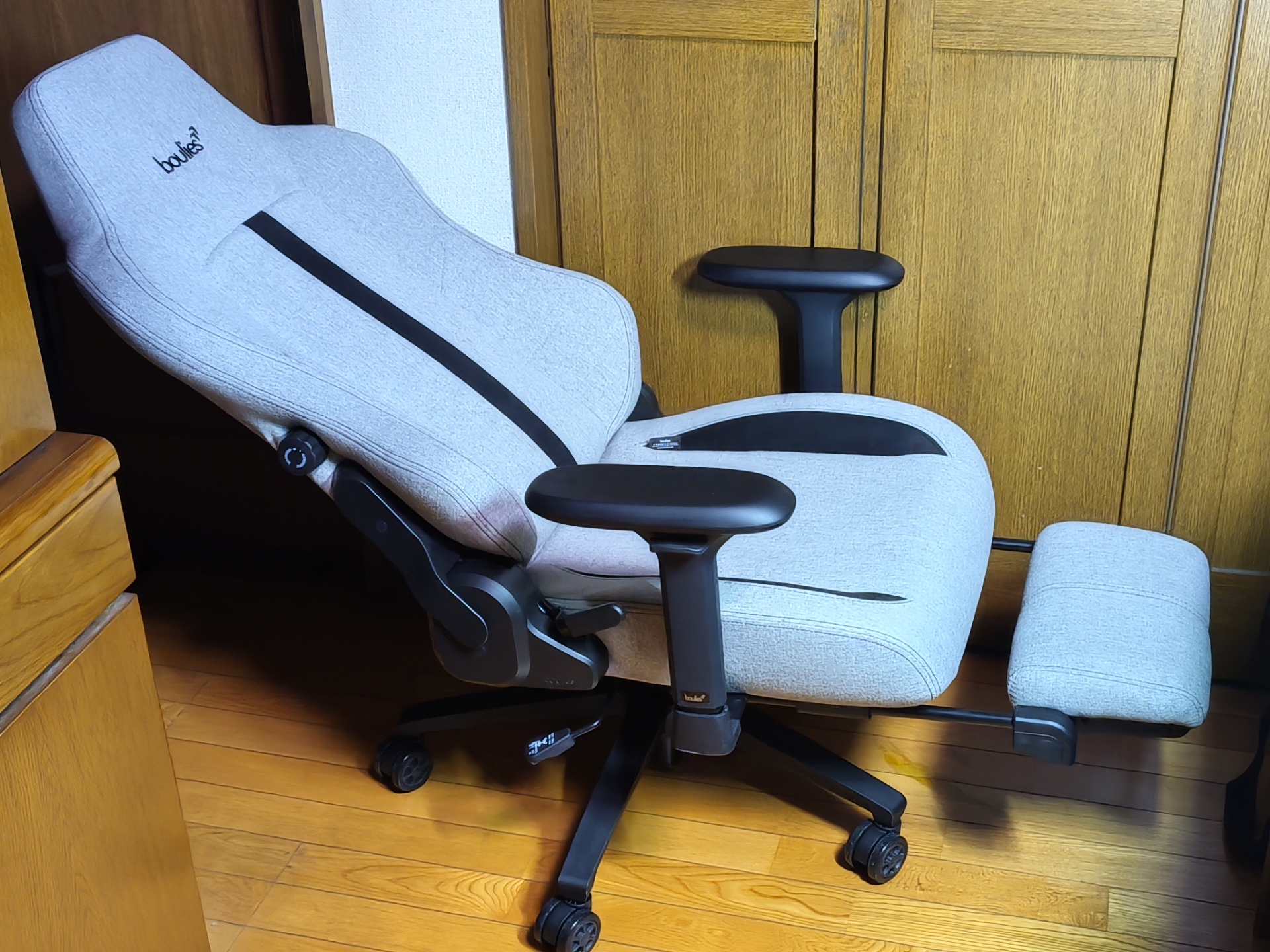 | ゲーミングチェア「Boulies Master Neo 2026」をレビュー!写真はリクライニング機能利用時 |