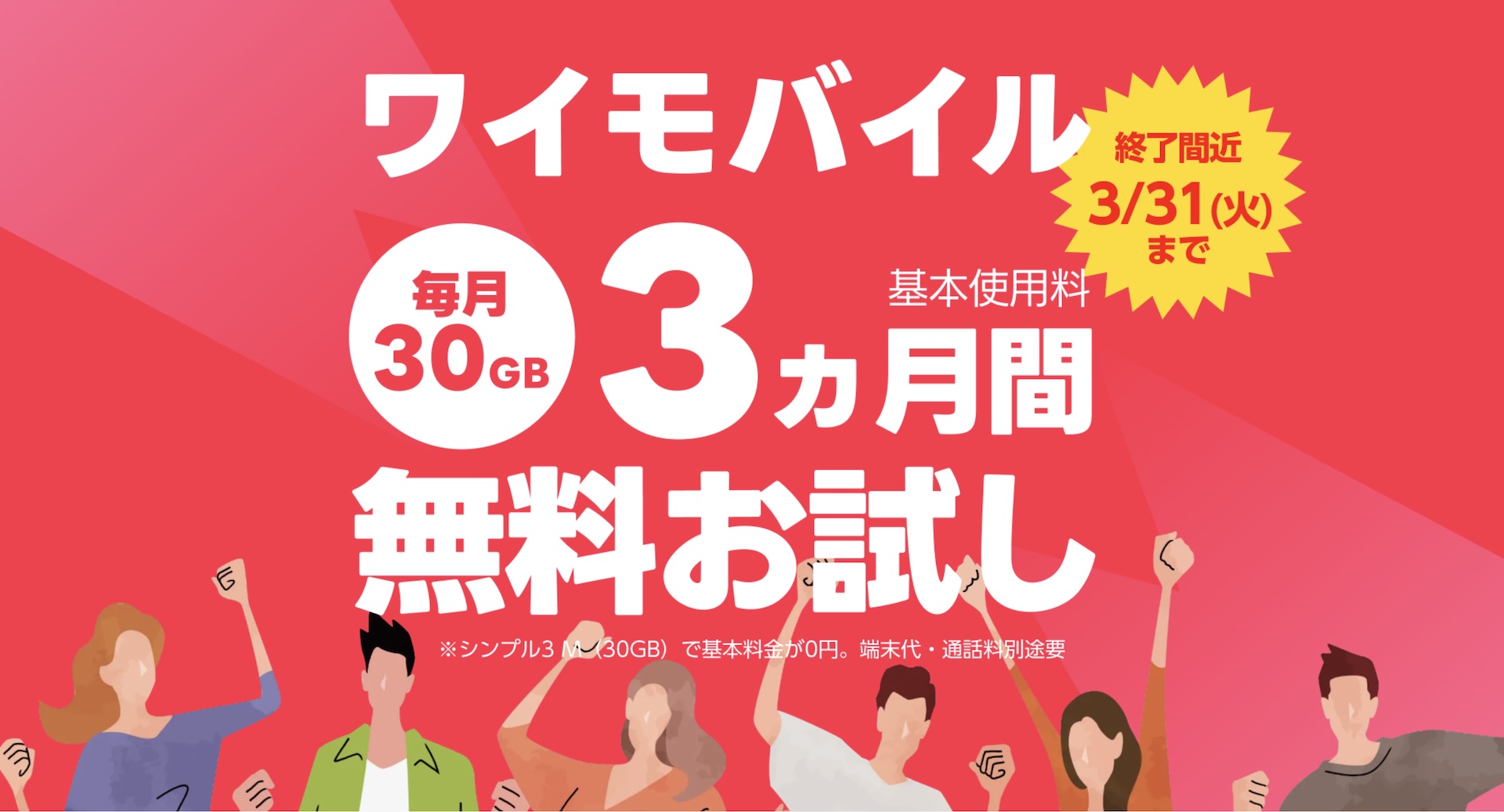 携帯電話サービス「Y!mobile」のシンプル3 Mの月額基本料3カ月間(事務手数料含む)が無料となる「SIM トライアル」が3月31日に終了
