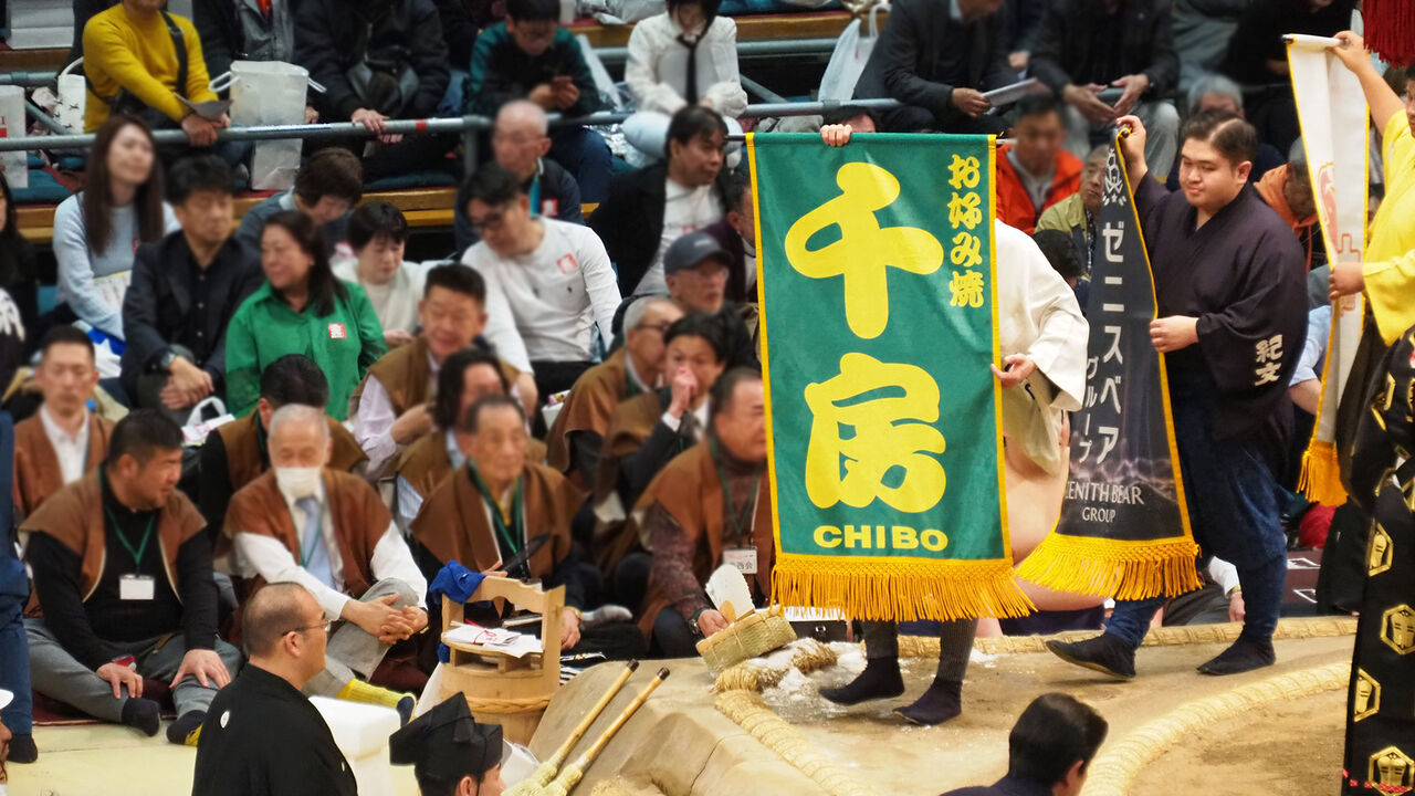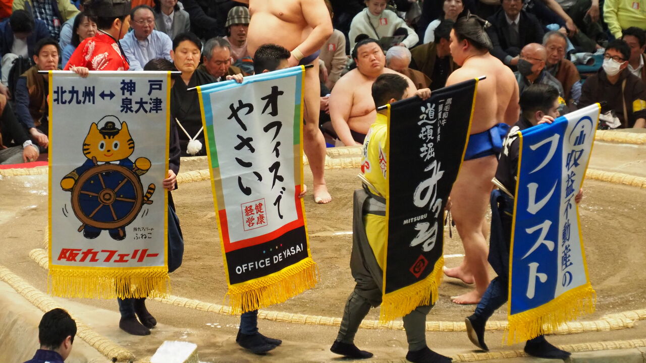 そんなことで相撲を見始めたわけですが、相撲のほうはいつもと同じ感じでつつがなく進んでいきます。横綱・大の里は休場ということで、この遠征の本来の目的は達成できなかったわけですが、ま、僕は初場所で見ているので問題ありません。むしろ、流れてくる懸賞旗には大阪ならではのものが多かったり、ご当地の力士への熱い応援に東京での場所との違いを感じられたり、大阪場所を中心とした後援会組織の東西会の皆さんがそろいの法被みたいなのを着て熱心に集団で応援している様子を見守ることができたり、「ならでは」のものを見られるいい機会になったなと思いました。