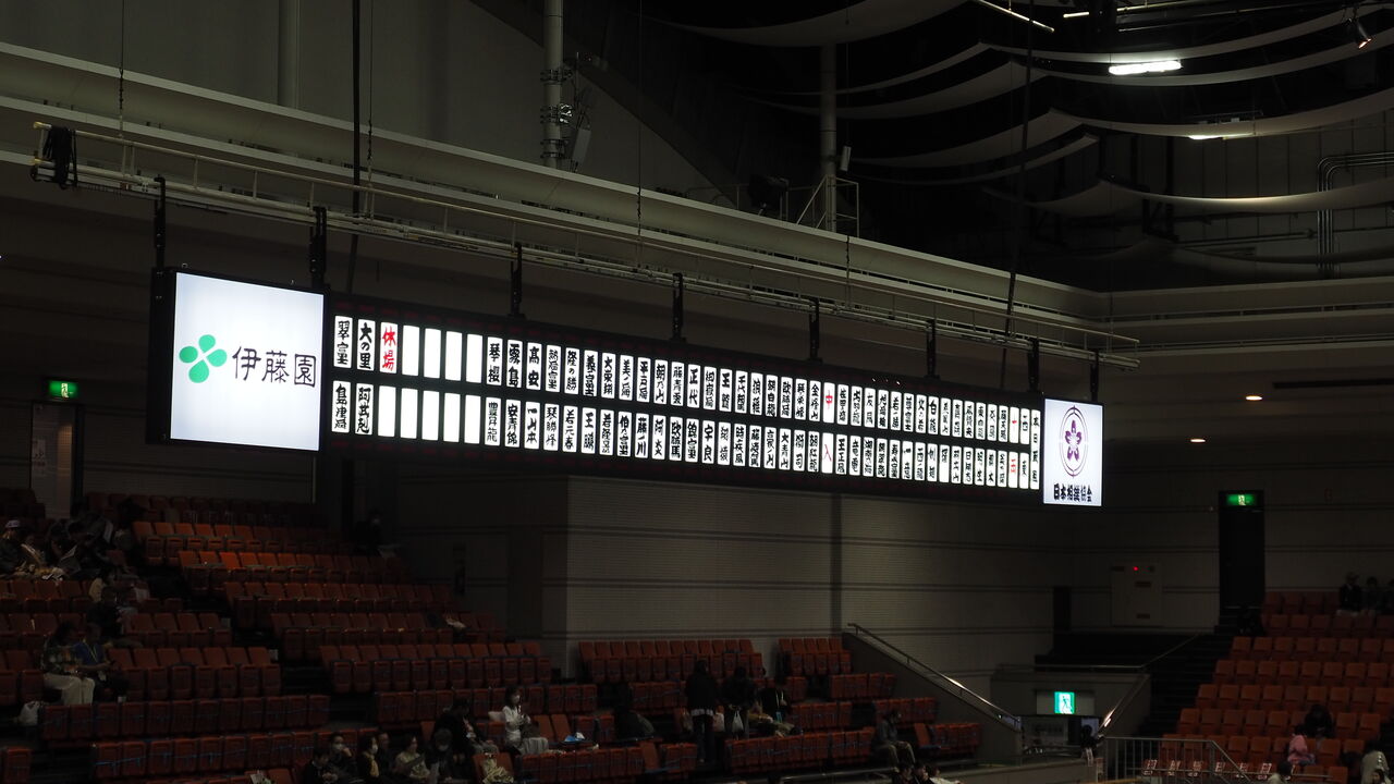 ↓向こう正面にはその日の取組が表示されます!決まり手はアナウンスをお聞きください!