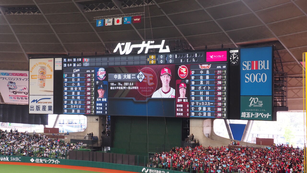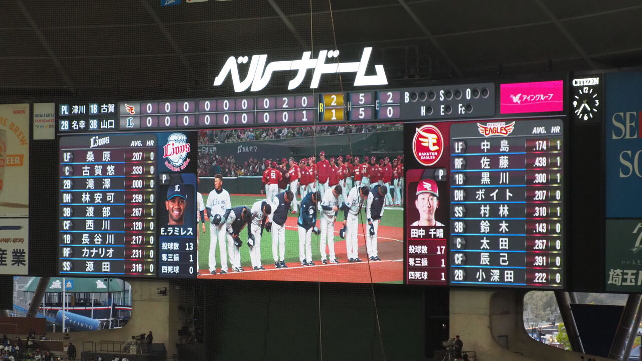 それにしても、この試合が「今季本拠地で迎える最初の週末」なわけですから、有名人のひとりくらいは呼ばれるものかと思ったのですがそれもなく、まるでド平日の試合のように淡々と試合前イベントは進んでいきます。ホントに?ホントです?これが下位球団の開幕ってヤツなのかもしれませんが、渋谷西武並みの盛り上がりのなさに、西武ホールディングスが言う「聖域なき流動化」の気配を感じずにはいられませんでしたよね。
