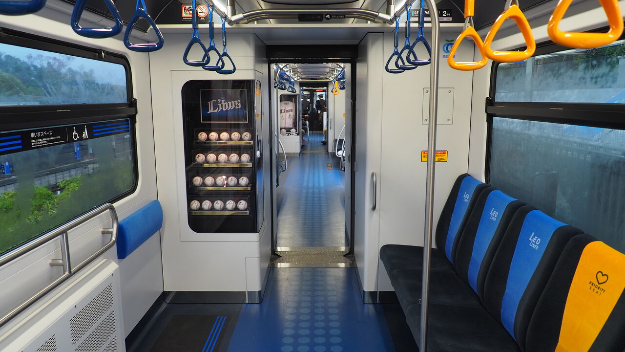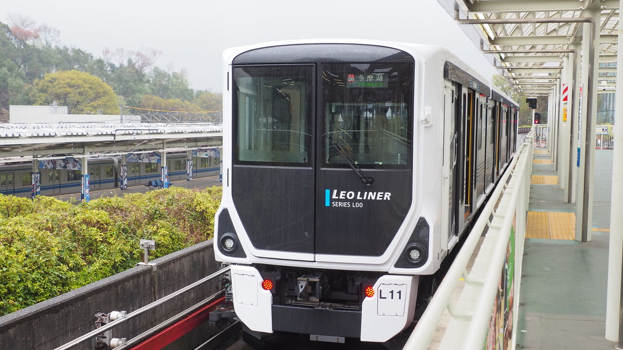 そんななか、いつものように西武山口線、通称レオライナーで西武球場前駅へ向かうと、途中で見慣れない対向車とすれ違いました。「電車なのに対向車?」と思われるかもしれませんが、この路線は線路はなく普通にタイヤで走っておりますので広義のバスと言ってもいい路線です。1車線の道路の途中にすれ違いポイントを設けているので、すれ違ったそれは紛うことなき対向車なのです。で、その見慣れない対向車はどうやら、40年ぶりにこの路線に導入された新車両LOO系(レオ系)だったようなのです!