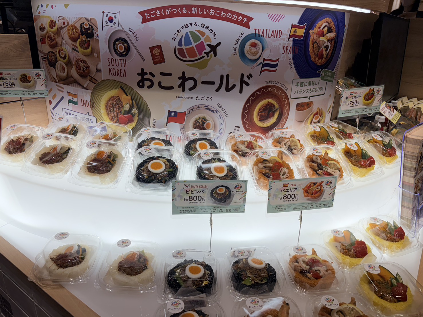 「おこわのたごさく」の店頭で展開されていたのは、世界の料理ともち米を掛け合わせた「おこわールド」。ランチタイムや、夕食の一品にもぴったりです。