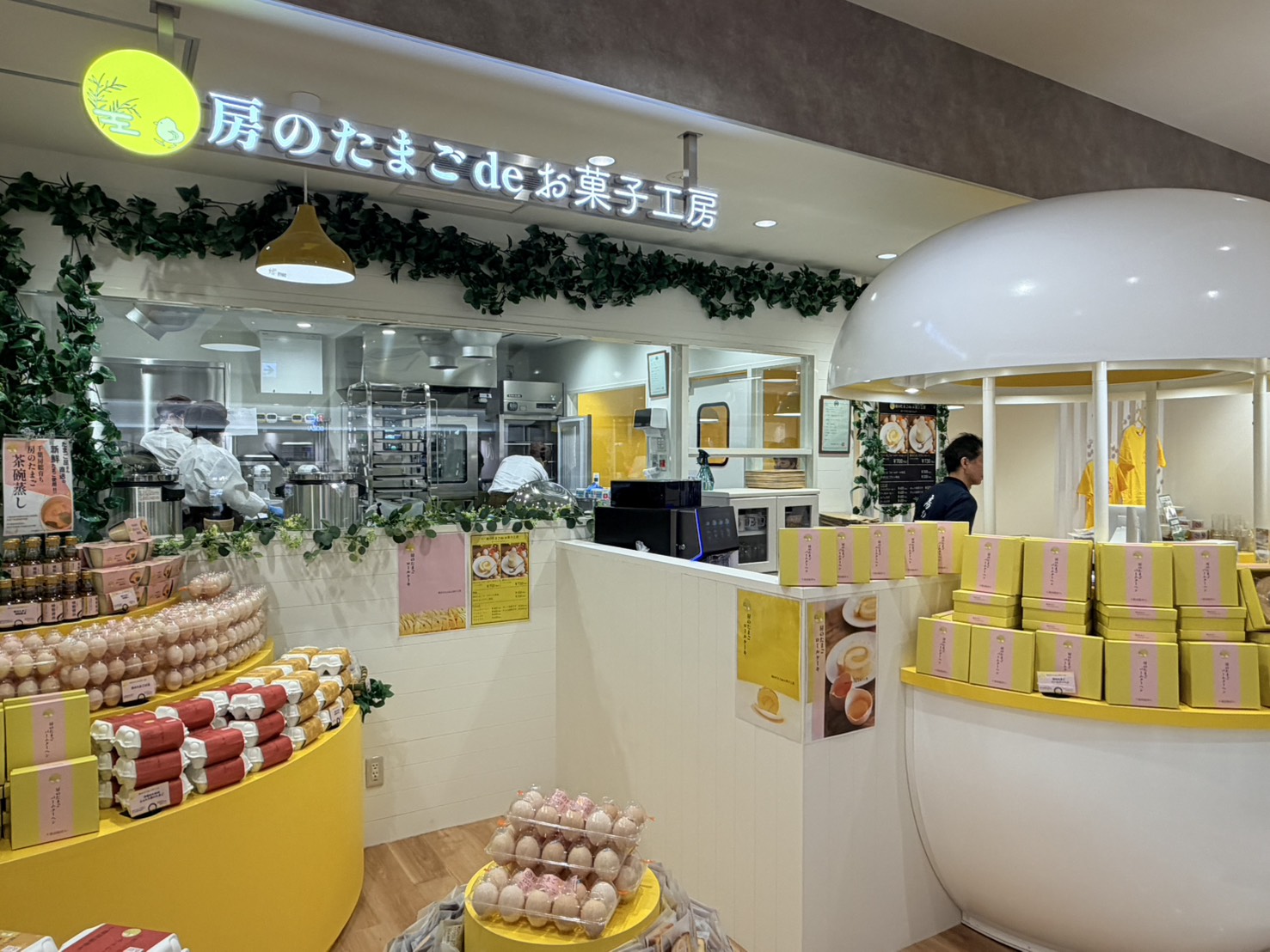 千葉県で人気の「房の駅」の新ブランド「房のたまご de お菓子工房」。店内は厨房が見える設計で、スイーツの製造工程が目の前で繰り広げられます。