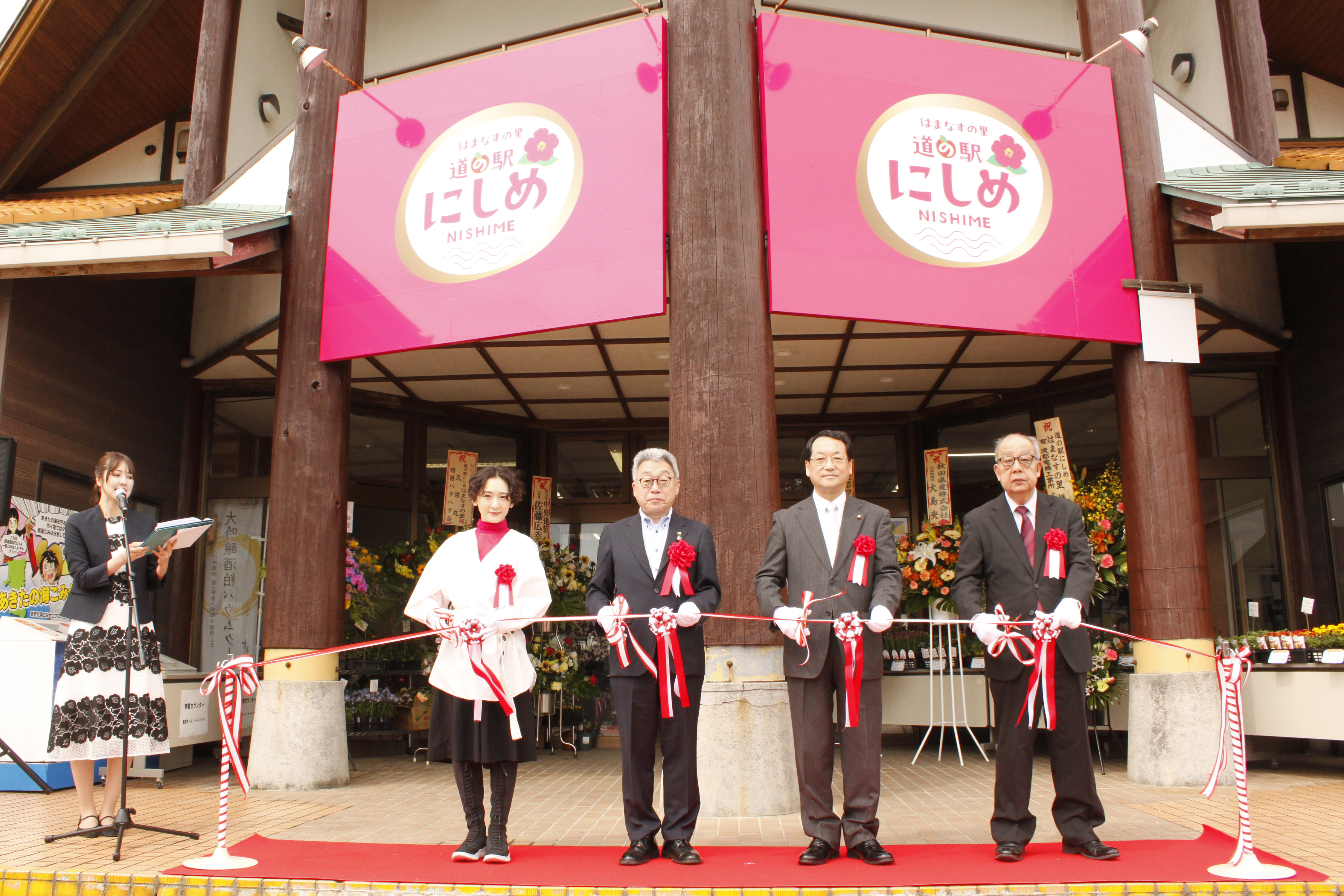 由利本荘市の湊市長などとテープカットを行い、生まれ変わった道の駅にしめの門出を祝いました。