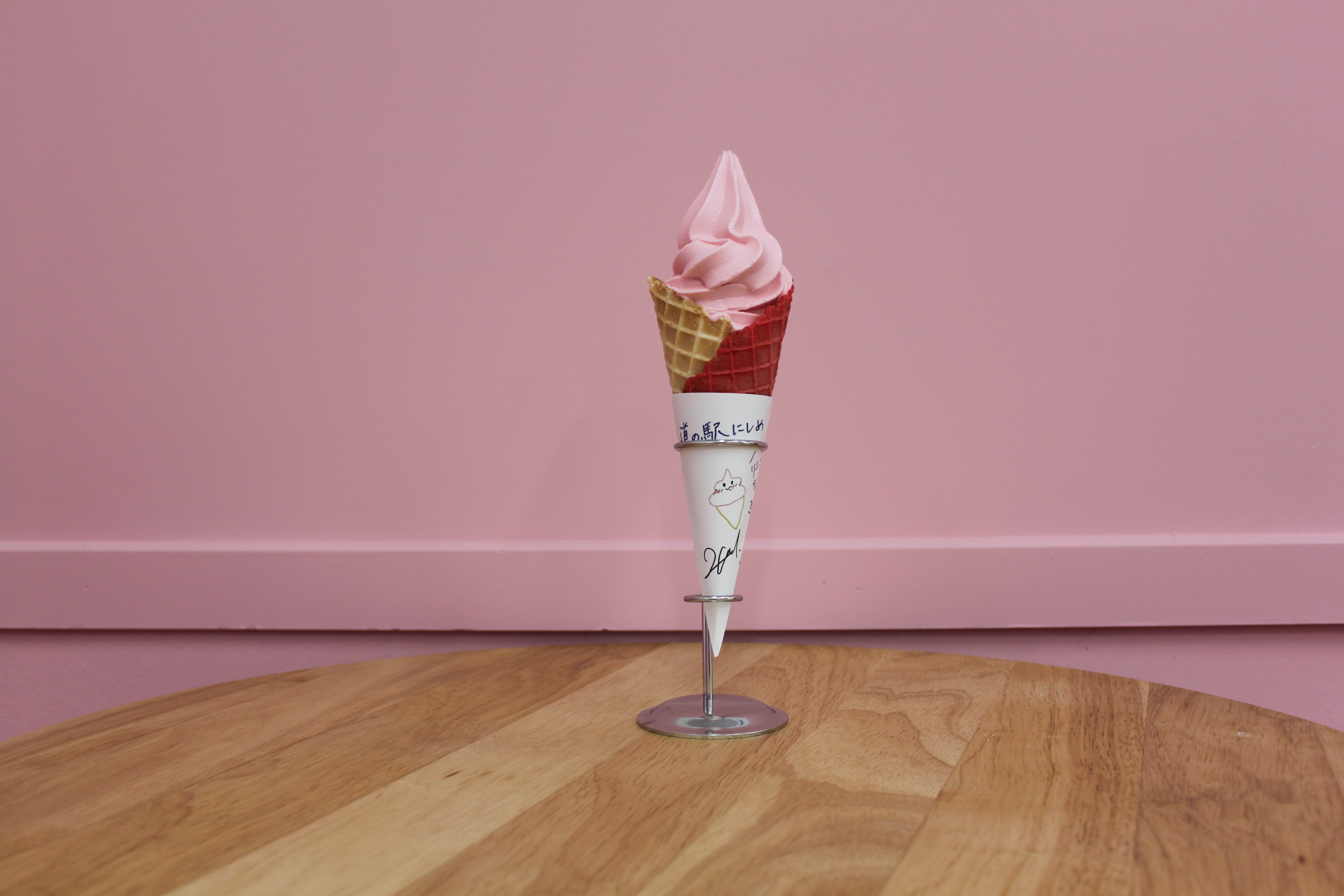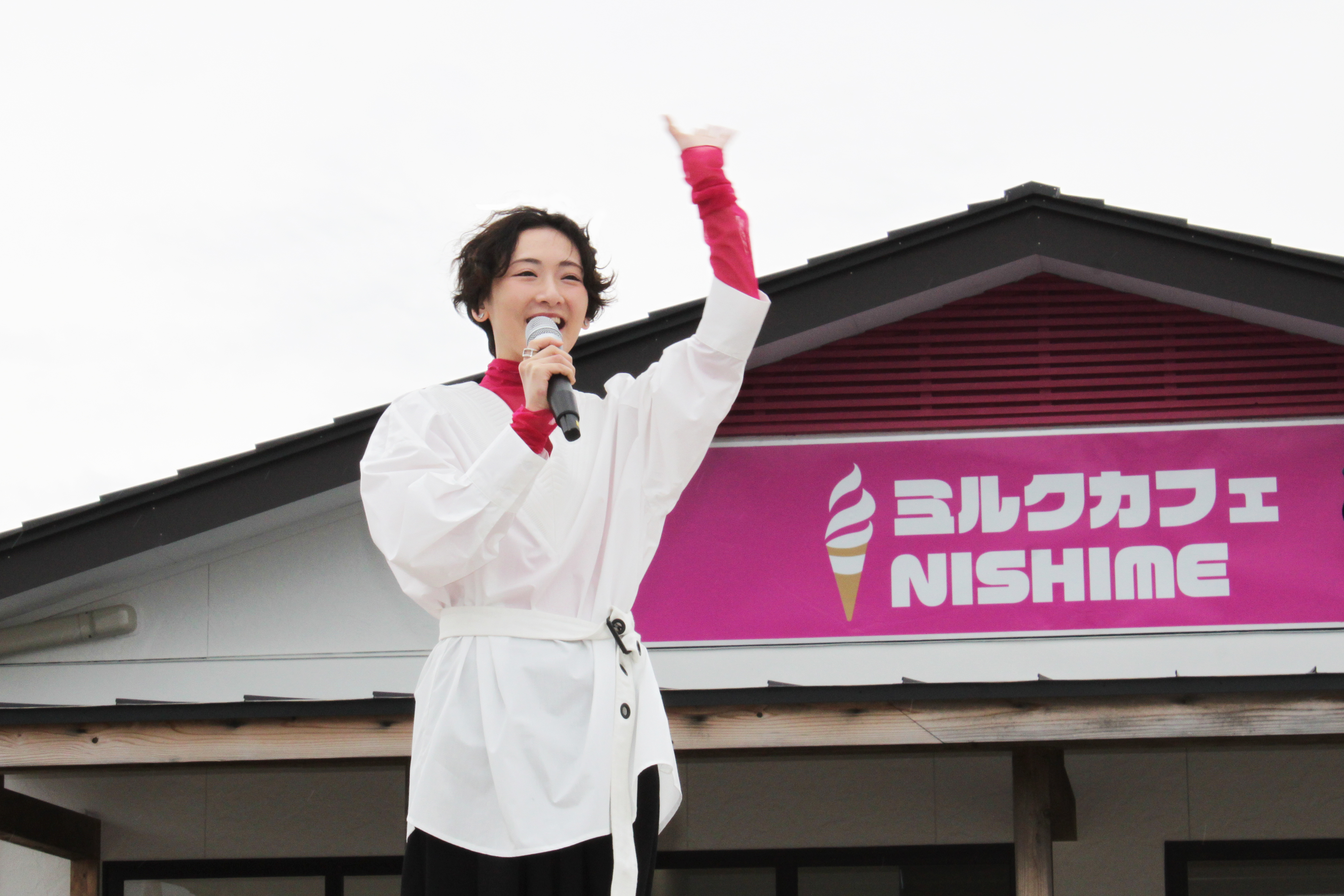 生駒里奈さんは、「リニューアルもうれしいことですし、コラボさせていただいたソフトクリームスリーブのデザインについて位は、『道の駅にしめ はまなすの里』にちなんで、はまなすのお花の紫のようなピンクのような色をテーマに書き下ろしました。『ミルクカフェ NISHIME』の店内にはサインも書かせていただきましたので、チェックしていただけたら嬉しいです。そしてソフトクリームを食べている画像を #いこしお秋田、#道の駅にしめ でSNSに投稿したらこっそり見に行きます」と話しています。