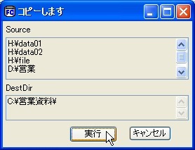 | 画面5 [Ctrl]キーを押しながら[実行]をクリックすると、コピー元、コピー先を確認してから実行することができる。 |