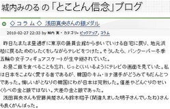 衆議院議員の城内実氏が冬季五輪のメダリスト、キム・ヨナ選手と浅田真央選手の闘いにブログで言及し、それを読んだ人たちから批判の声が殺到。ブログが大炎上している。城内議員はキム選手が金メダルで浅田選手が銀メダルだったことに対し、「僅差やどんぐりのせいくらべの金と銀ではない。大差の金と銀であった」等のコメントしたためである。