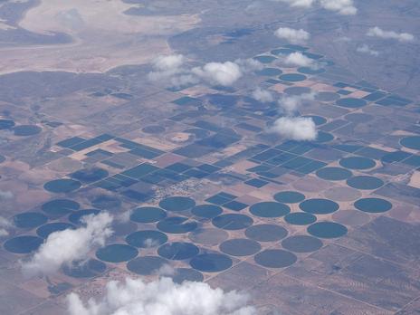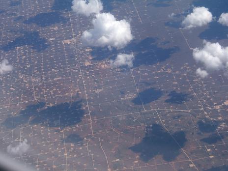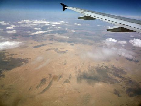 アリゾナ州の上空。雲の薄さのわりに、地上の影がハッキリとしています。