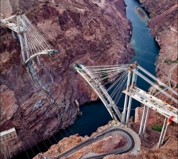 巨大なアーチに圧倒…フーバーダムに架かる橋「コロラドリバー・ブリッジ」の建設風景