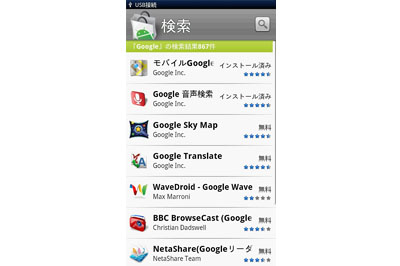 音声検索を利用するためには、まずAndroidマーケットからGoogle音声検索をダウンロードする必要がある。