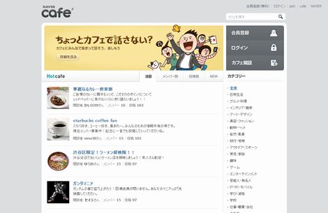 | 「NAVER cafe」のトップ画面 |