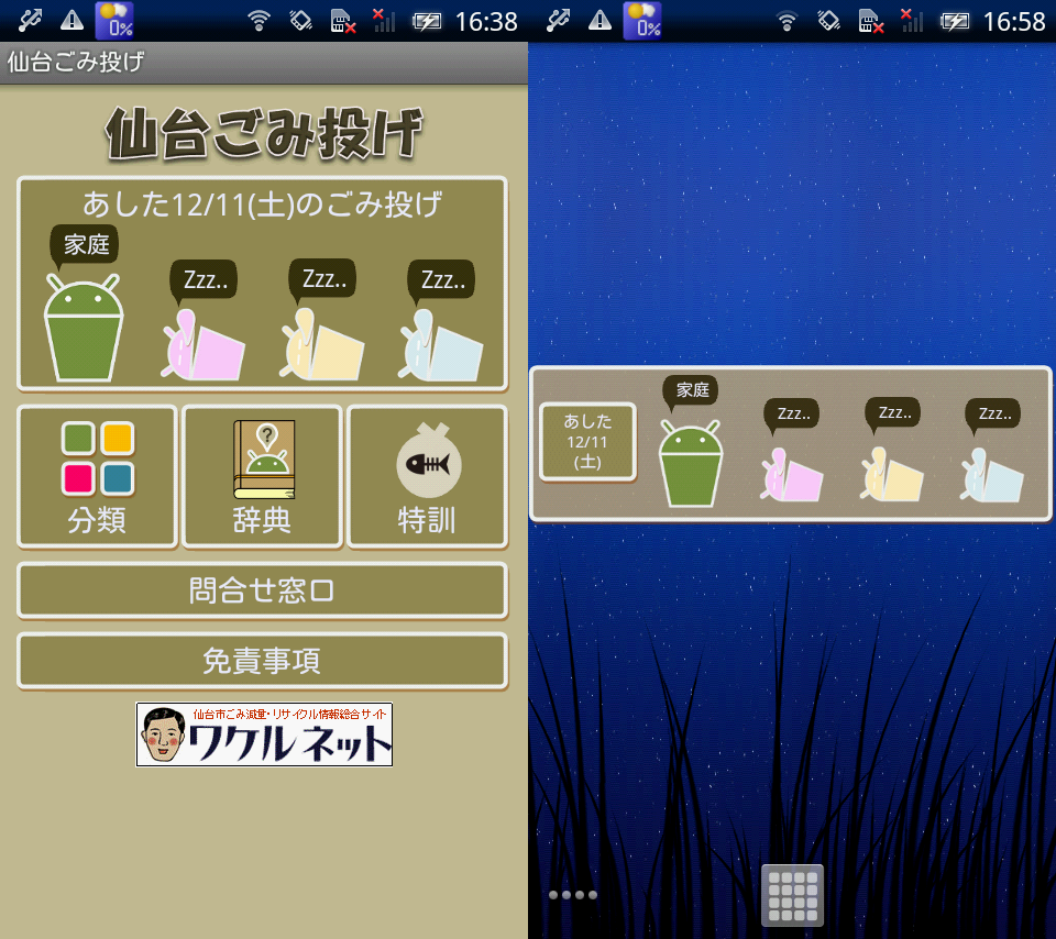 ごみを出す日や仙台市のごみ分別方法を教えてくれる「仙台ごみ投げ」【Androidアプリ】