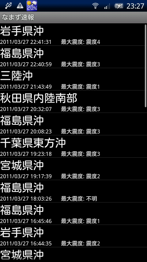 スマートフォンで地震をリアルタイムで知らせてくれる「なまず速報β」【Androidアプリ】
