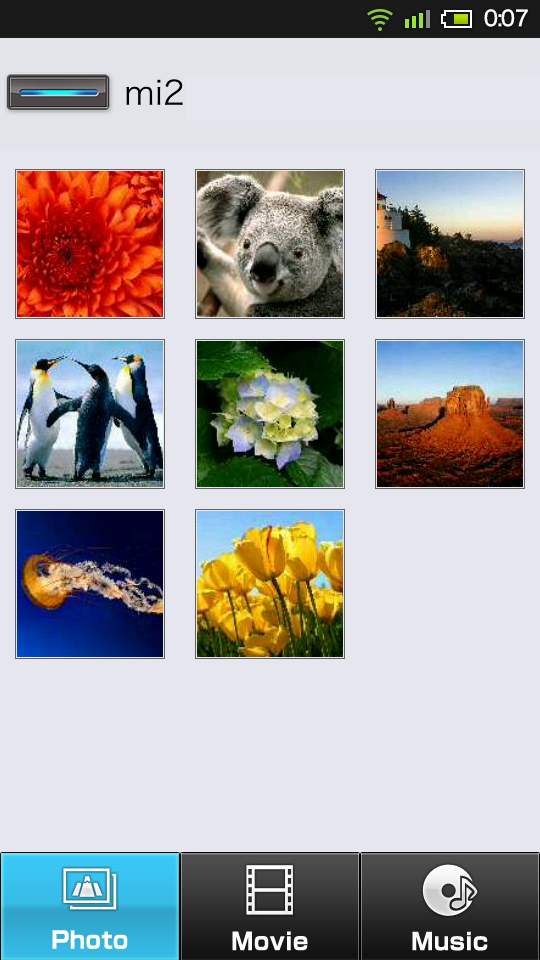 PCのDLNAサーバーと接続したところ。写真やMP3データなどの再生が可能だ。