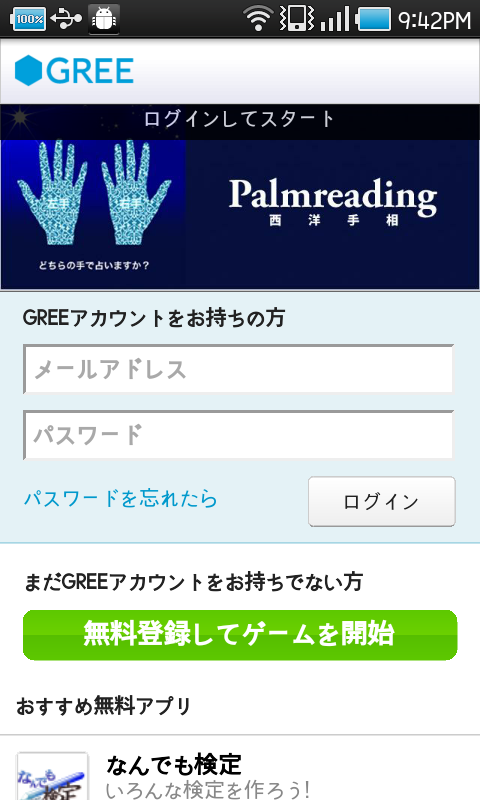 GREE(グリー)へログインすることで占い開始となるのでこの機会に登録してみてください。