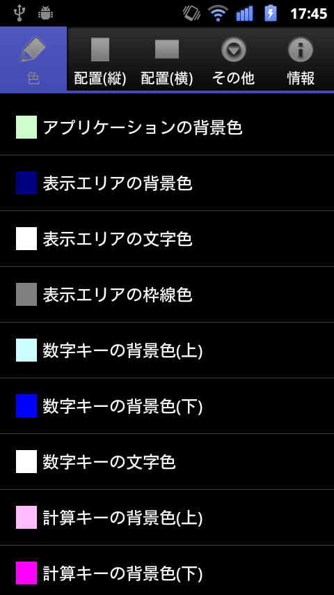 なんだか表示が多いのですが、『色』タグで全体やキーの色などを変更します。