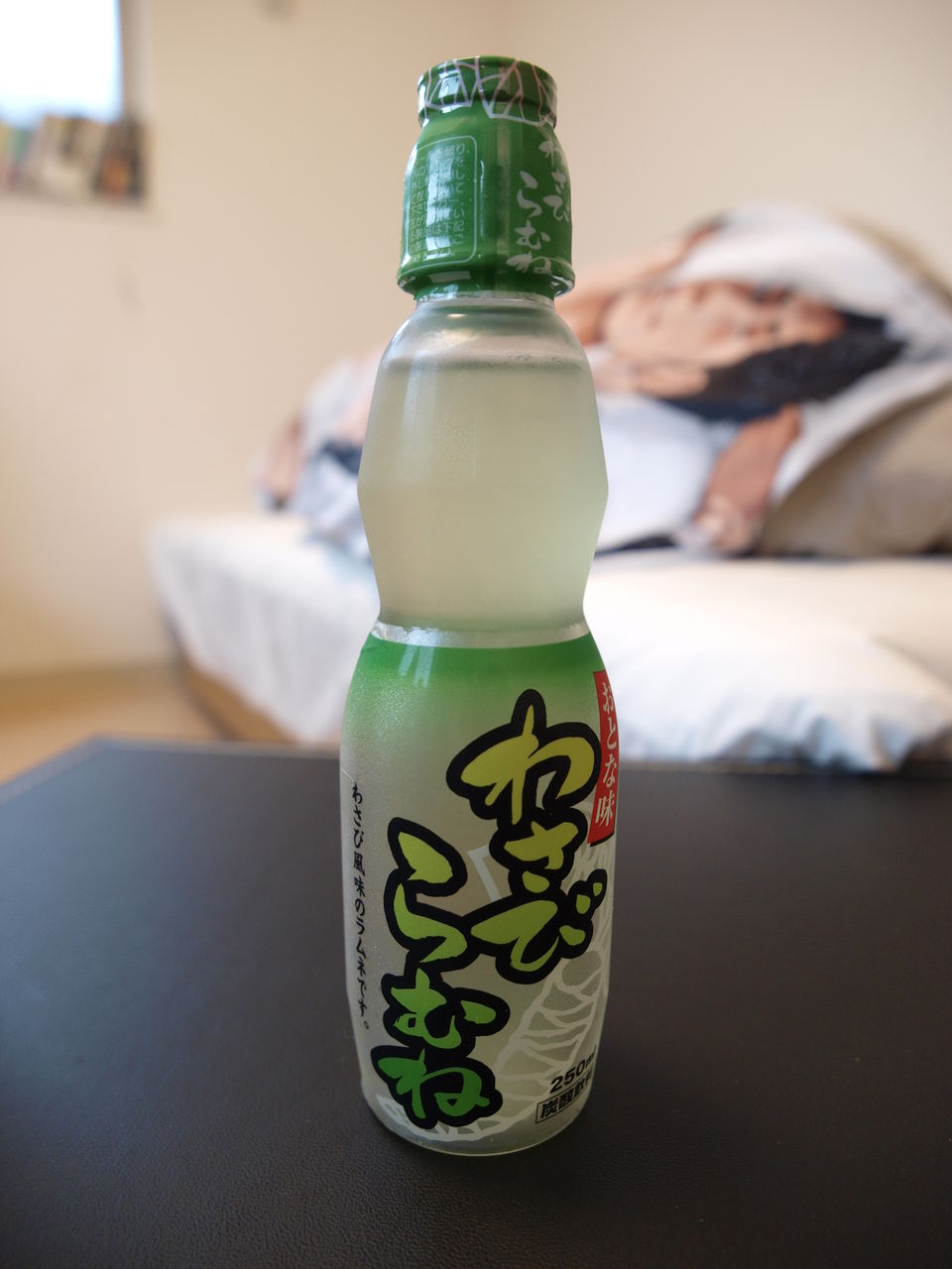 静岡名産のわさび……を使っていない「わさびらむね」。それってどうなんだ、と思うけど、まああくまで“風味”ですから……。本当にわさびを使っていたらかなりシャレにならない味になったと思うんだけど、これはそれなりに美味しく飲めました。わさび味を期待して飲むとあまりの普通の味にがっかりすると思う。