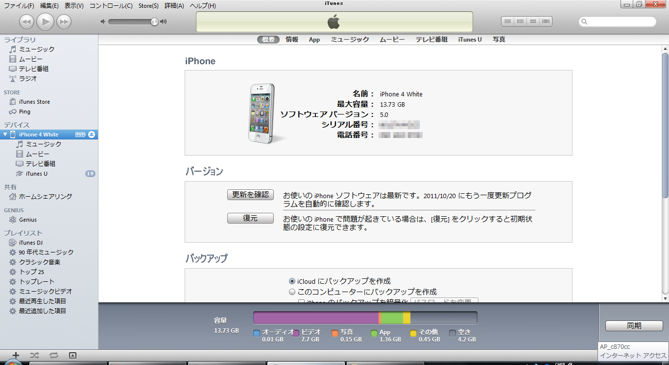 アップデートを行うには、事前に、iOS 5に対応したiTunes 10.5をインストールしておく必要があります。WindowsおよびMac OS Xで利用可能です。アップデートの手順としては、バックアップ→アップデートファイルのダウンロード→アップデート→復元という流れになりますが、基本的に指示通り行えばいいだけです。