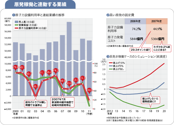 電力会社の業績は、原子力設備利用率と密接な関係がある。