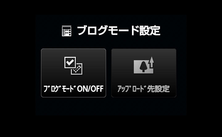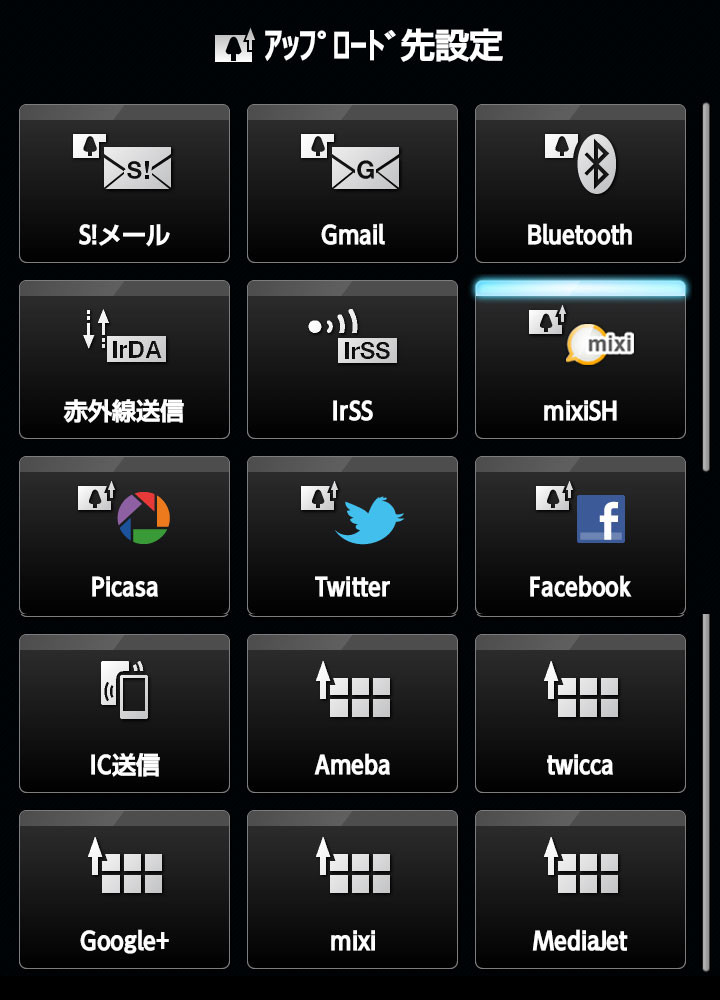AQUOS PHONE 102SHには、ブログモードという設定項目があり、設定をオンにすることであらかじめ設定しておいたコンテンツへの共有操作にそのまま進む事ができます。