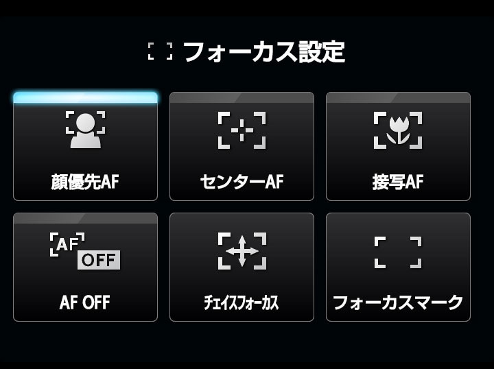 カメラを起動すると、設定項目が分かりやすくアイコン表示されています。