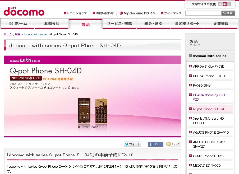 ・NTTドコモ、限定3万台板チョコ風スマートフォン「Q-pot. Phone SH-04D」を発表 - S-MAX(エスマックス) - スマートフォンとモバイルを活用するブログメディア - ライブドアブログ