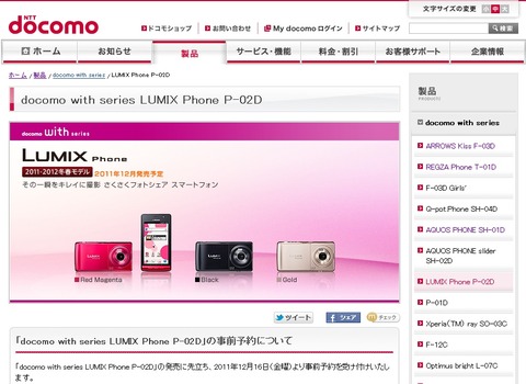 ・docomo with series LUMIX Phone P-02D | 製品 | NTTドコモ