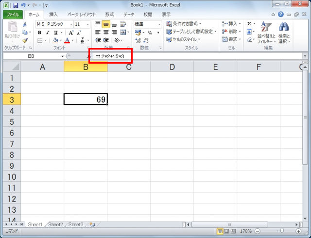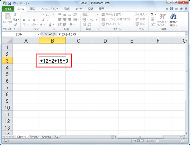 まず最初に、「=」を入力する代わりに「+」を入力する。続けて通常通りに数式を入力しよう(画面3)。