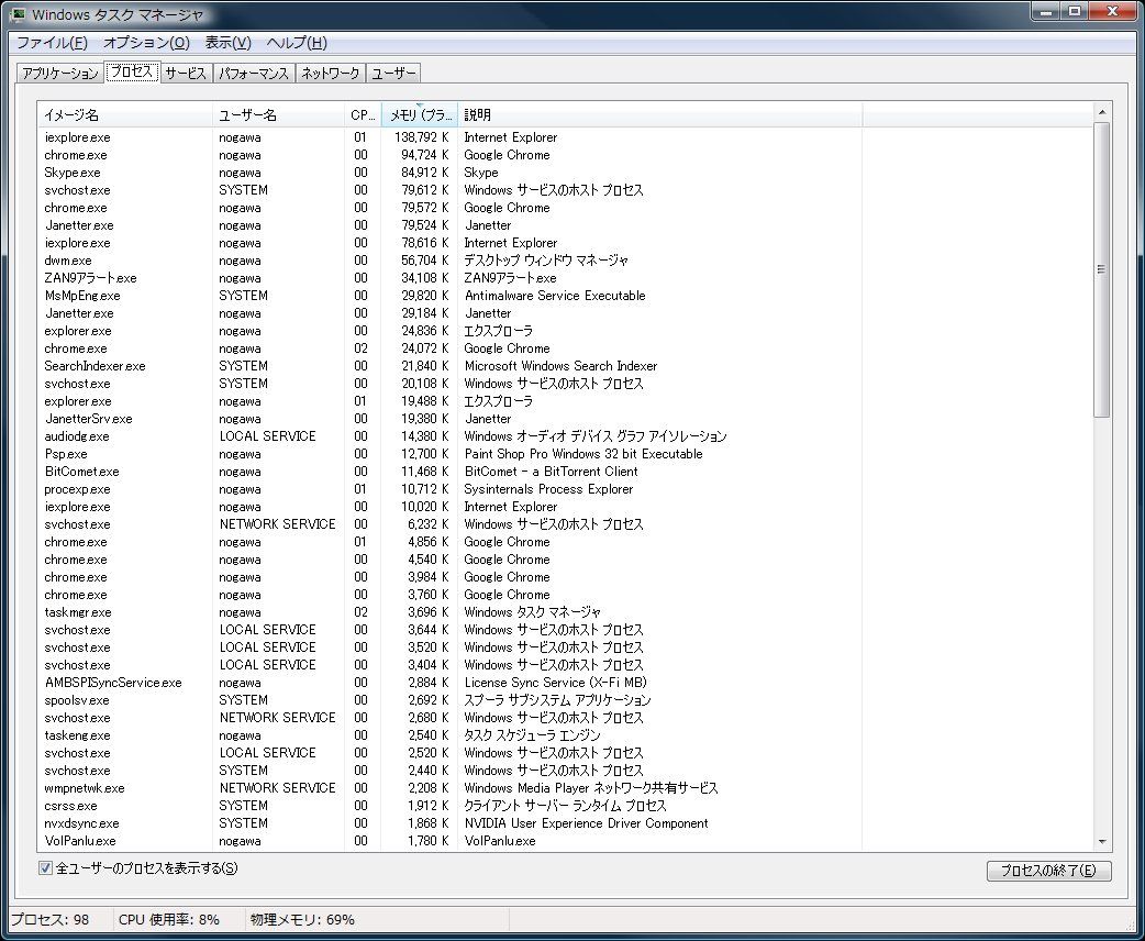 | 図1■Windowsのトラブル遭遇でいちばん利用されるツールが、このタスクマネージャーだ |
