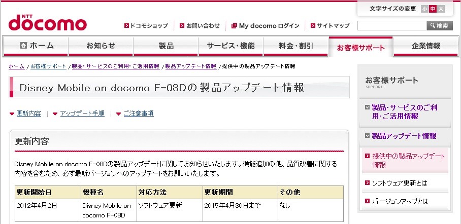 ・Disney Mobile on docomo F-08Dの製品アップデート情報 | お客様サポート | NTTドコモ