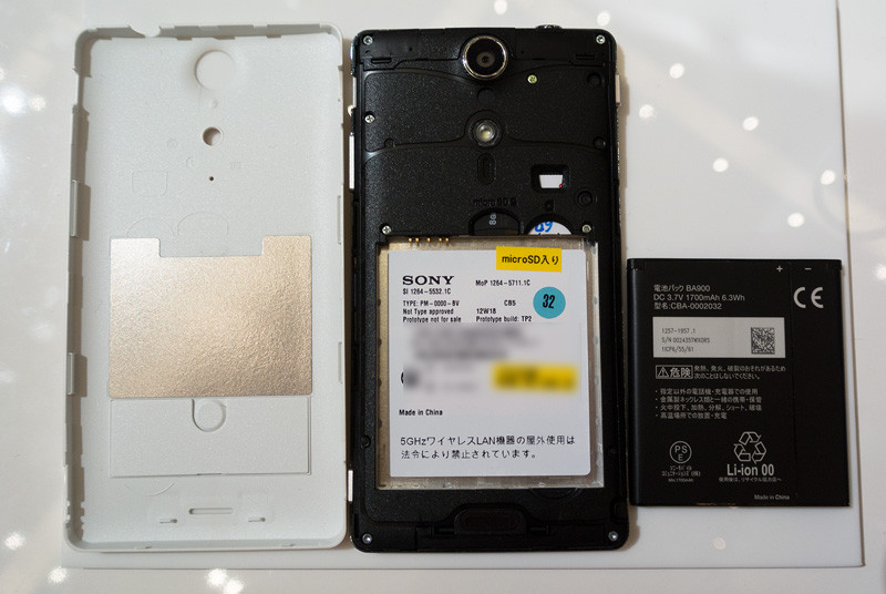 Xperia NXとは違いリアカバーを外してバッテリー交換ができるようになりました。ドコモUIM、microSDもこの中にあります。バッテリーの容量は1700mAhとなっていました。