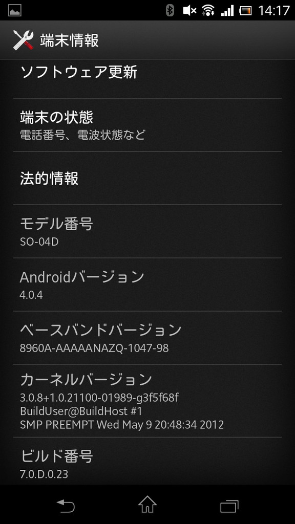 | 機種名 | Xperia GX SO-04D | |