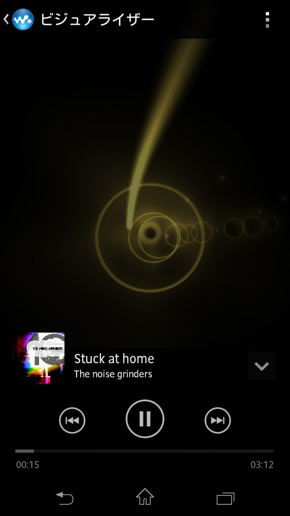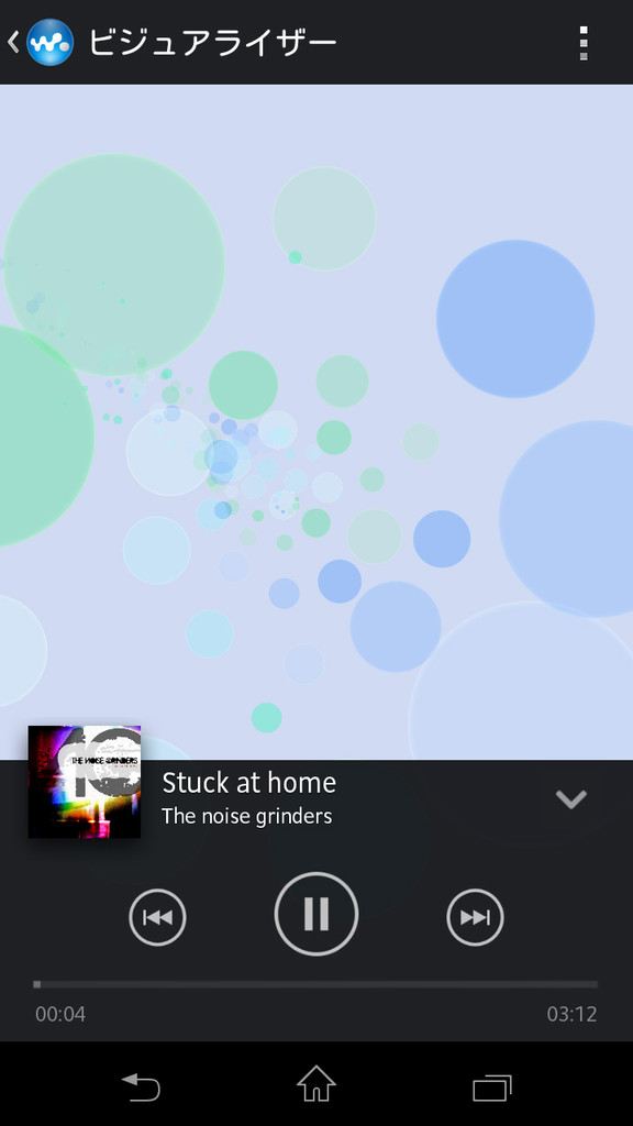 ミュージックプレイヤーがWalkmanアプリとなった(写真=左)。新たにビジュアライザーが追加され、卓上ホルダーとあわせて使いたい機能となった(写真=中央、右)。