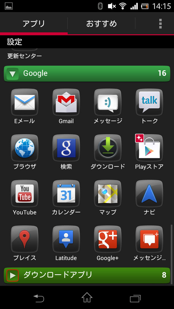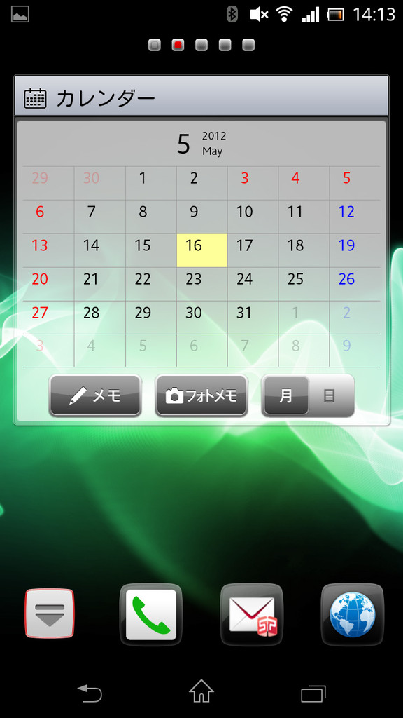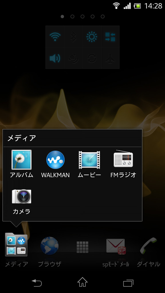 Xperiaオリジナルのホーム画面。