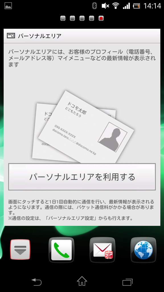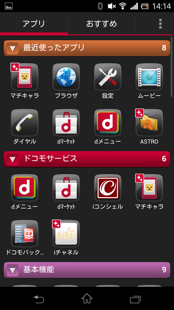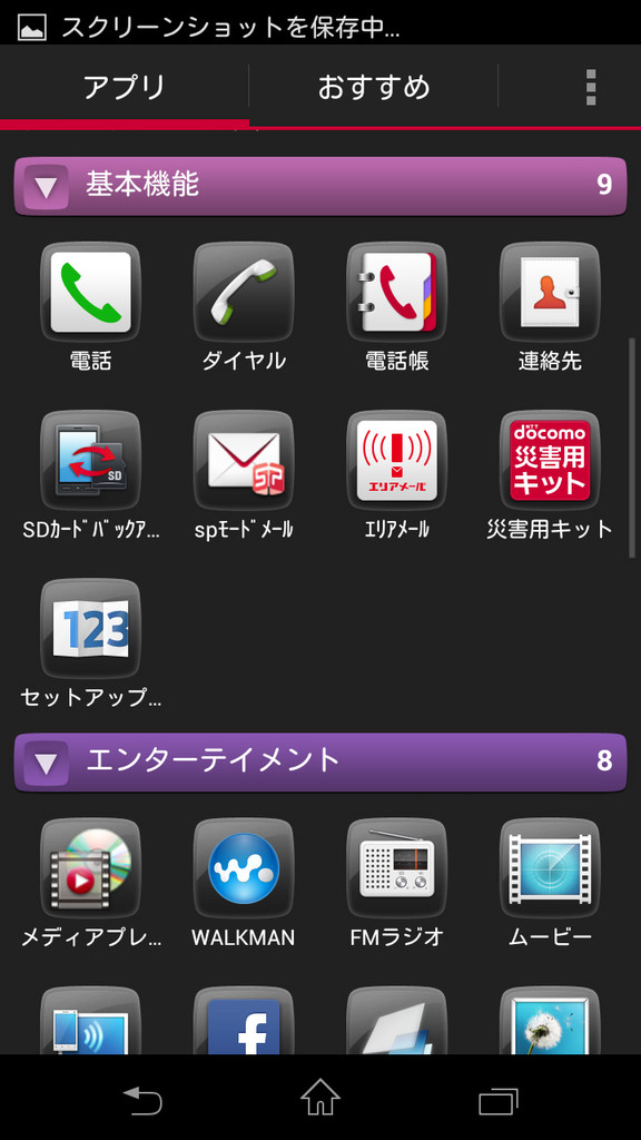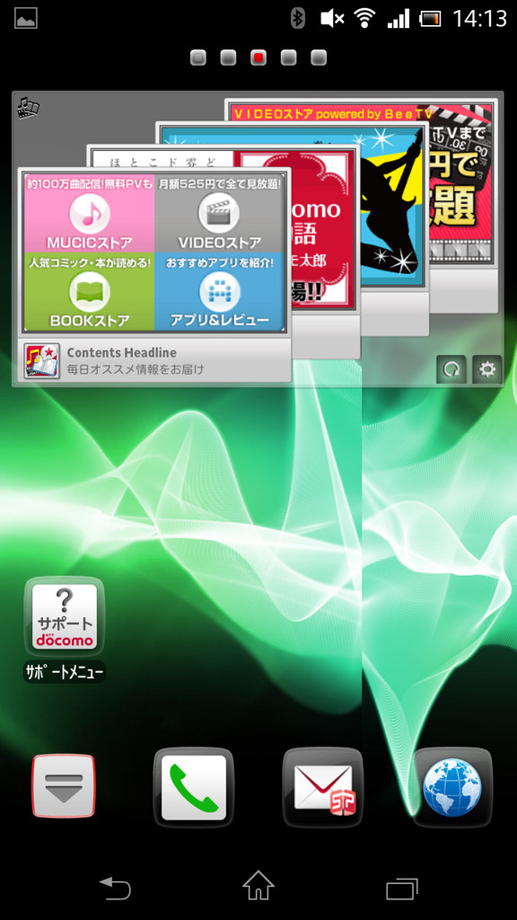 ドコモパレットUIによるホーム画面。