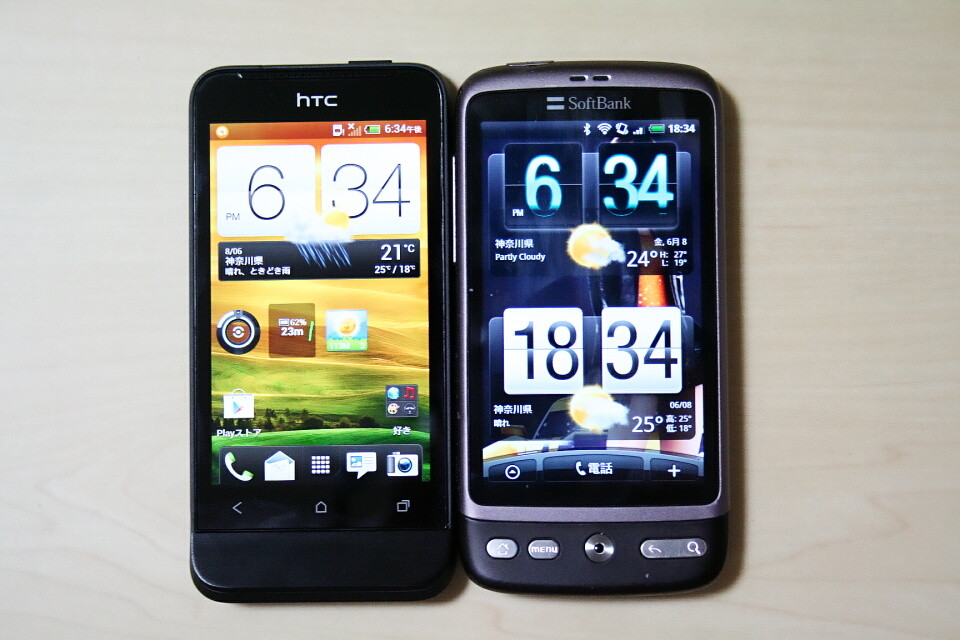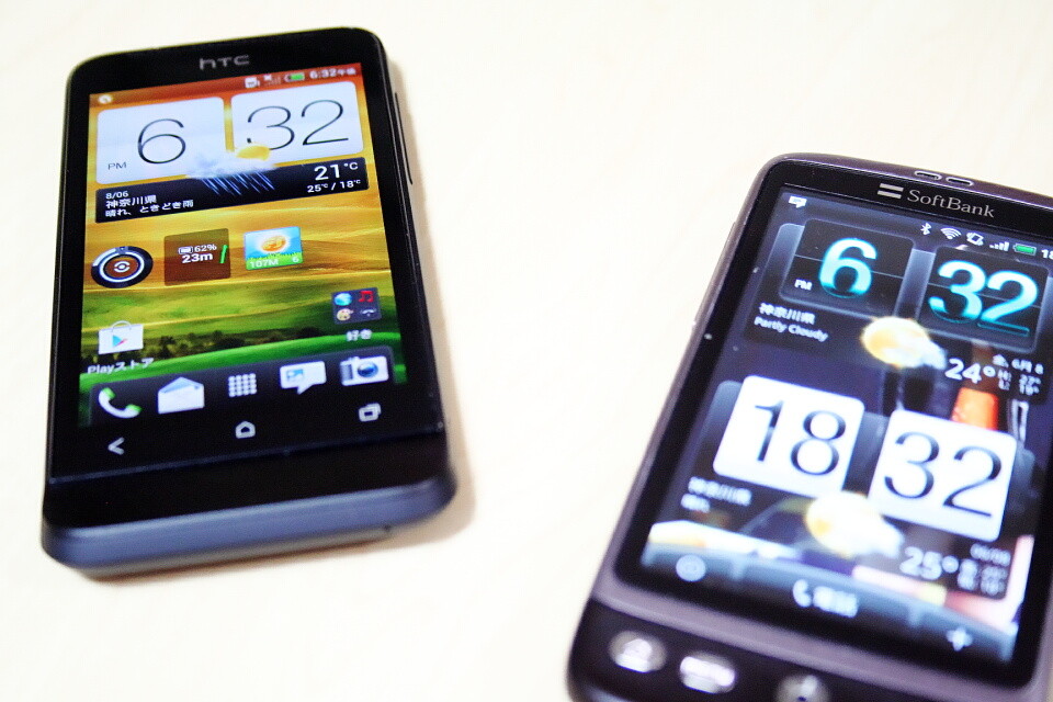 前回は外観や同梱品をチェックしたが、今回は、およそ2年前にソフトバンクから発売された「HTC Desire X06HT」(以下、X06HT)と比較してみる。外観やディスプレイをチェックし、X06HTが発売してから2年経過して何が変わったかを見ていこう。